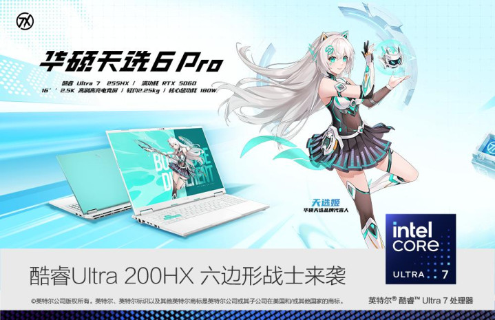 当然,对于笔记本这种长期使用的设备来说,“买旧不如买新”仍然是最稳妥的选择。尤其是在当前这个时间节点,如果你本身就有换机计划,更推荐一步到位,直接上新平台。而搭载全新硬件平台的华硕天选 6 Pro,正是这一批次中最值得关注的产品之一。它采用最新的英特尔酷睿Ultra 7 处理器,在先进架构与工艺的加持下,彻底打破传统游戏本“高性能必然短续航”的固有印象,实现了强劲性能与持久续航的兼得。接下来,就带你具体看看它的实力。